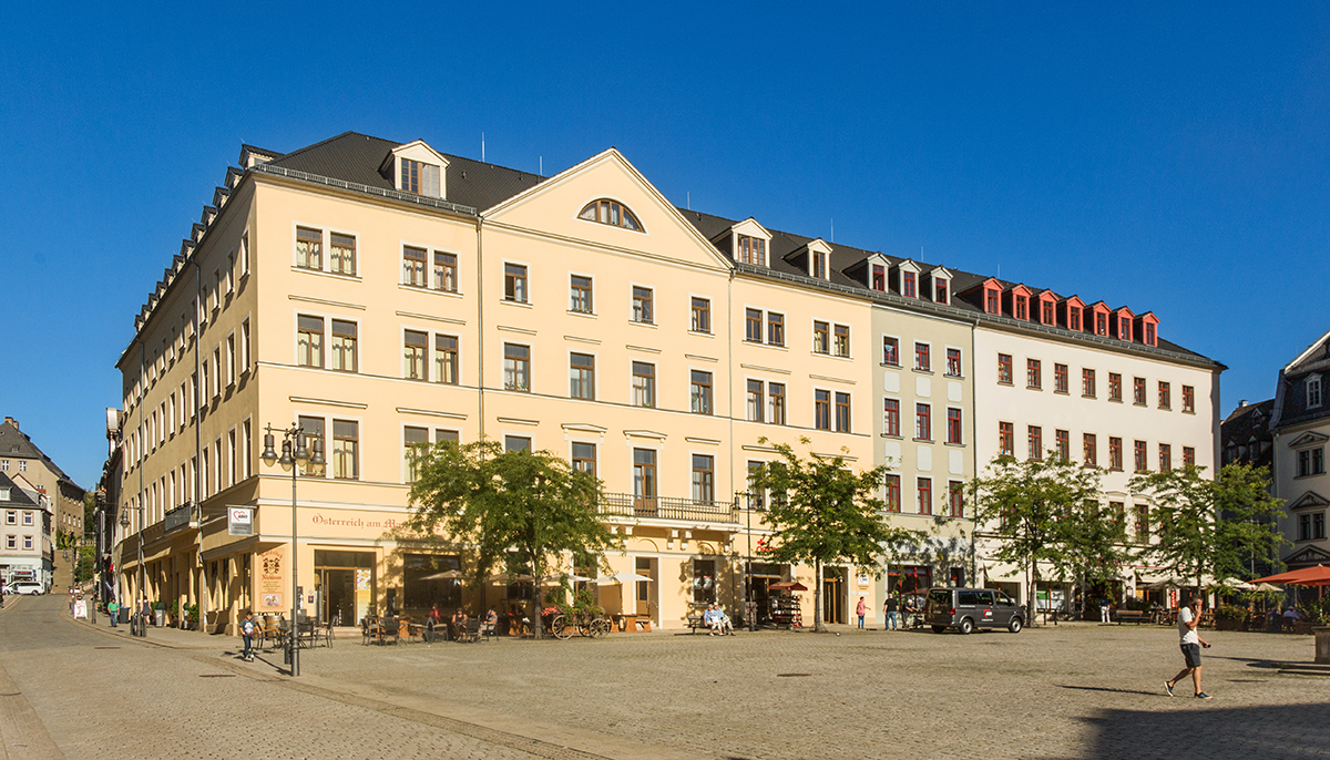 Die Geschichte des repräsentativen Gebäudes am Geraer Marktplatz reicht aber noch viel weiter zurück als bis zur Heimeröffnung 2009. 1823 wurde es fertiggestellt und viele Jahre als Gaststätte „Deutsches Haus“ betrieben. 1952 öffnete hier das „Haus der Deutsch-Sowjetischen Freundschaft“ seine Türen, im Volksmund nur „Freundschaft“ genannt. Hier traten viele DDR-Größen auf, es gab Tanz- und Kinoveranstaltungen. Als 1972 in der „Freundschaft“ das Restaurant „Pskow“ eröffnete, war sogar eine Delegation aus der gleichnamigen sowjetischen Großstadt anwesend.